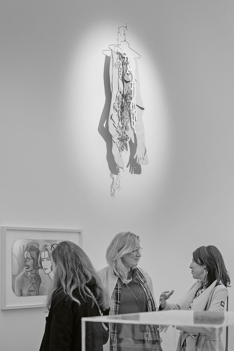 Die Reihe «ReCollect!», in der Kunstschaffende Teile der historischen Sammlung neu kuratieren, eröffnete auch in ihrem zweiten Jahr neue, unerwartete Sichtweisen auf die Bestände der Kunsthaus-Sammlung. Die in Oslo tätigen Kunstschaffenden Ida Ekblad (*1980) und Matias Faldbakken (*1973) inszenierten nach einer ersten erfolgreichen Präsentation 2023 im Moser-Bau das zweite Kapitel ihres «ReCollect!»-Beitrags im Chipperfield-Bau. Dort stellten sie eines ihrer Lieblingswerke aus der Sammlung – Francis Picabias «Cure-dents» (um 1924) – vier bemalten, grossformatigen Bronzeskulpturen von Ekblad gegenüber. Die räumliche, aber auch zeitliche und ideelle Nähe und Distanz zwischen den beiden künstlerischen Positionen wurde schliesslich durch eine buchstäbliche Intervention von Faldbakken «vermessen» und damit augenzwinkernd anschaulich gemacht.